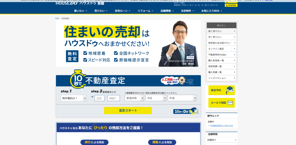 全国のハウスドゥチェーンが対応できる点が記載され、県外からの相談や遠方物件でも動きやすい期待があります。スピードと選択肢の多さを重視する人に向くタイプと言えるでしょう。
